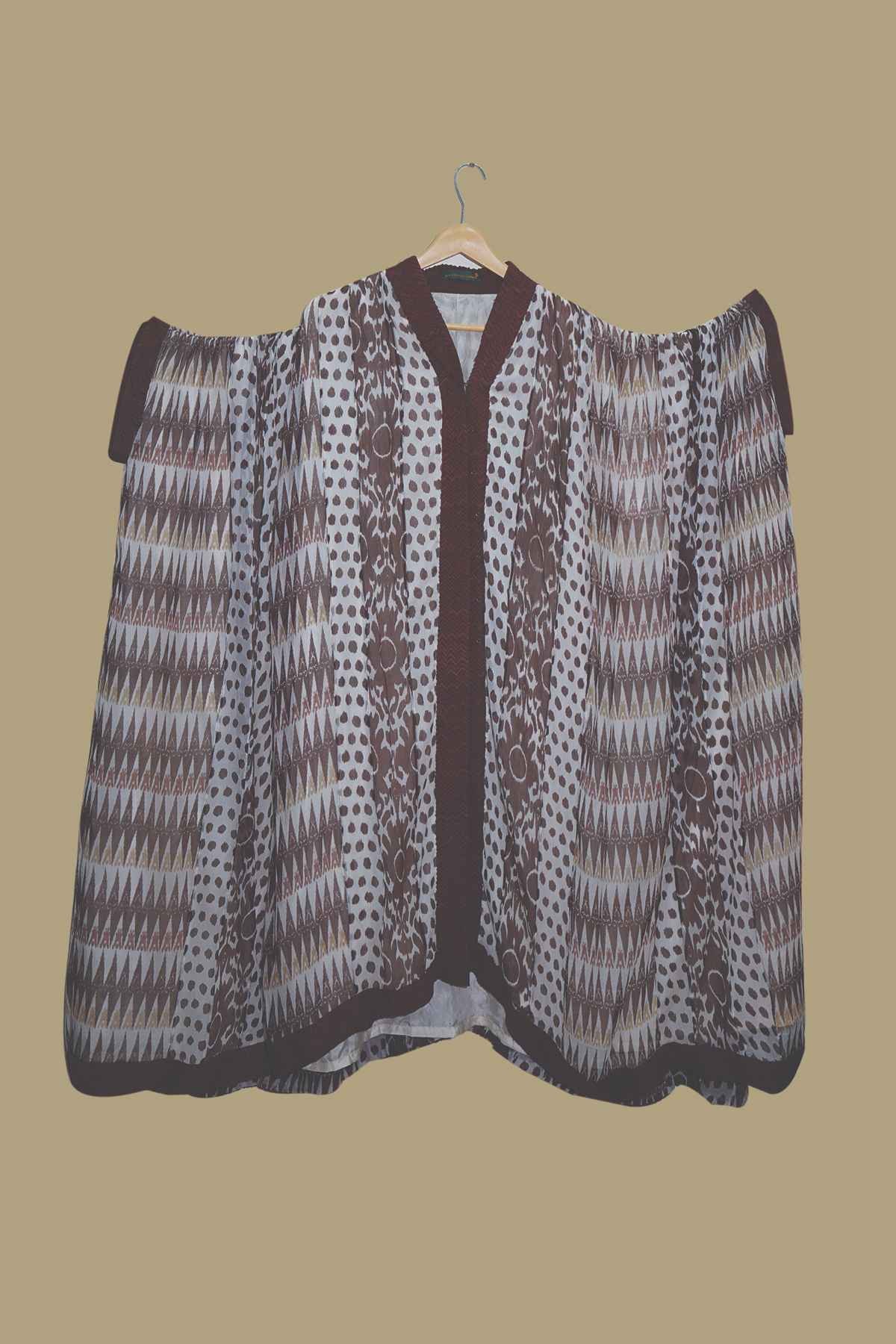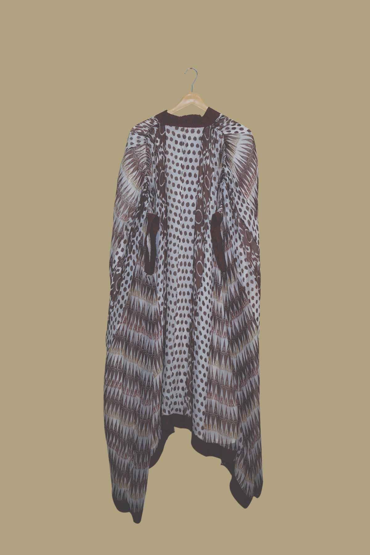 Abstract Brown & White Kaftan with Geometric Print