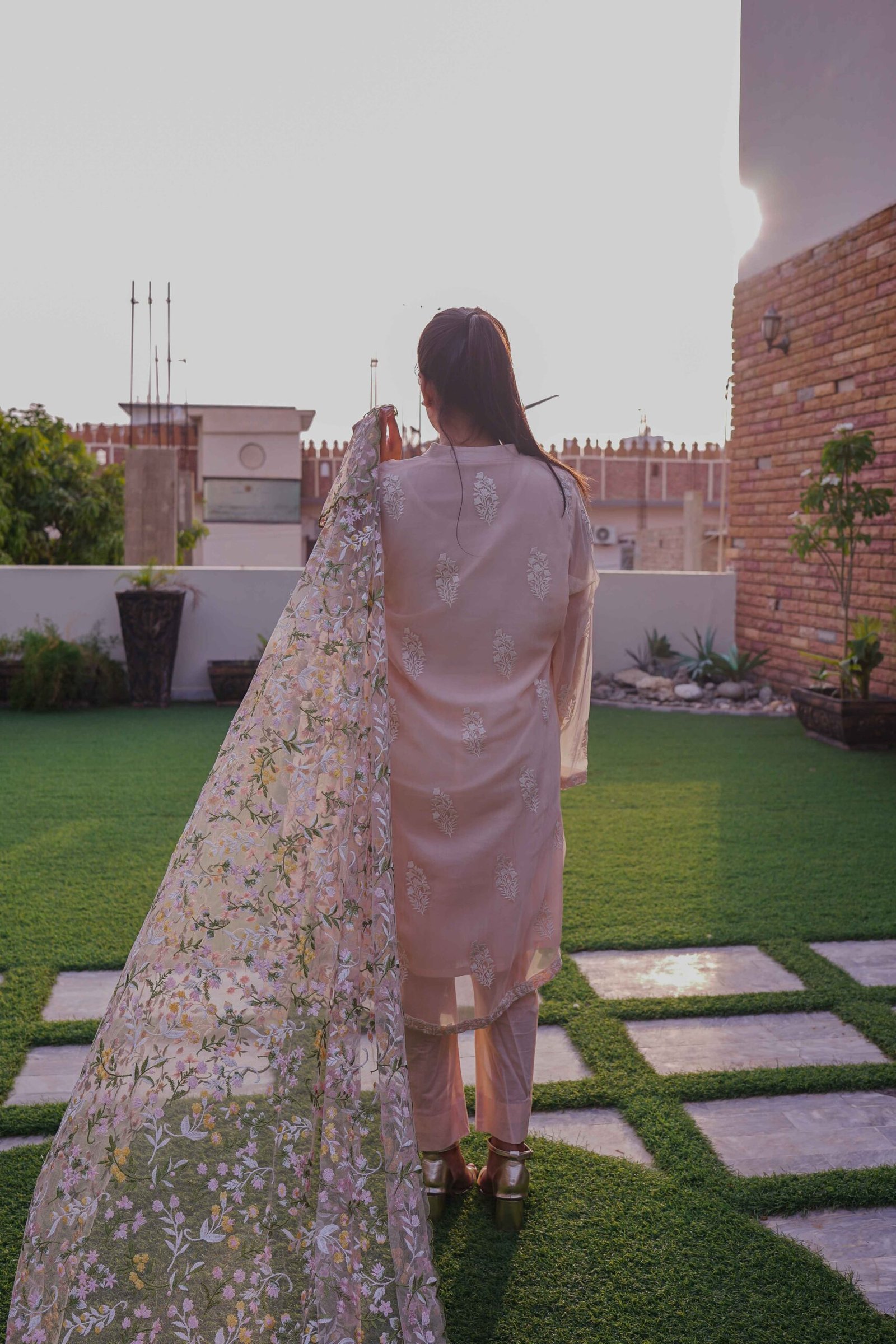 • Dupatta: Net Organza with 3D Floral Embroidery & Sequins