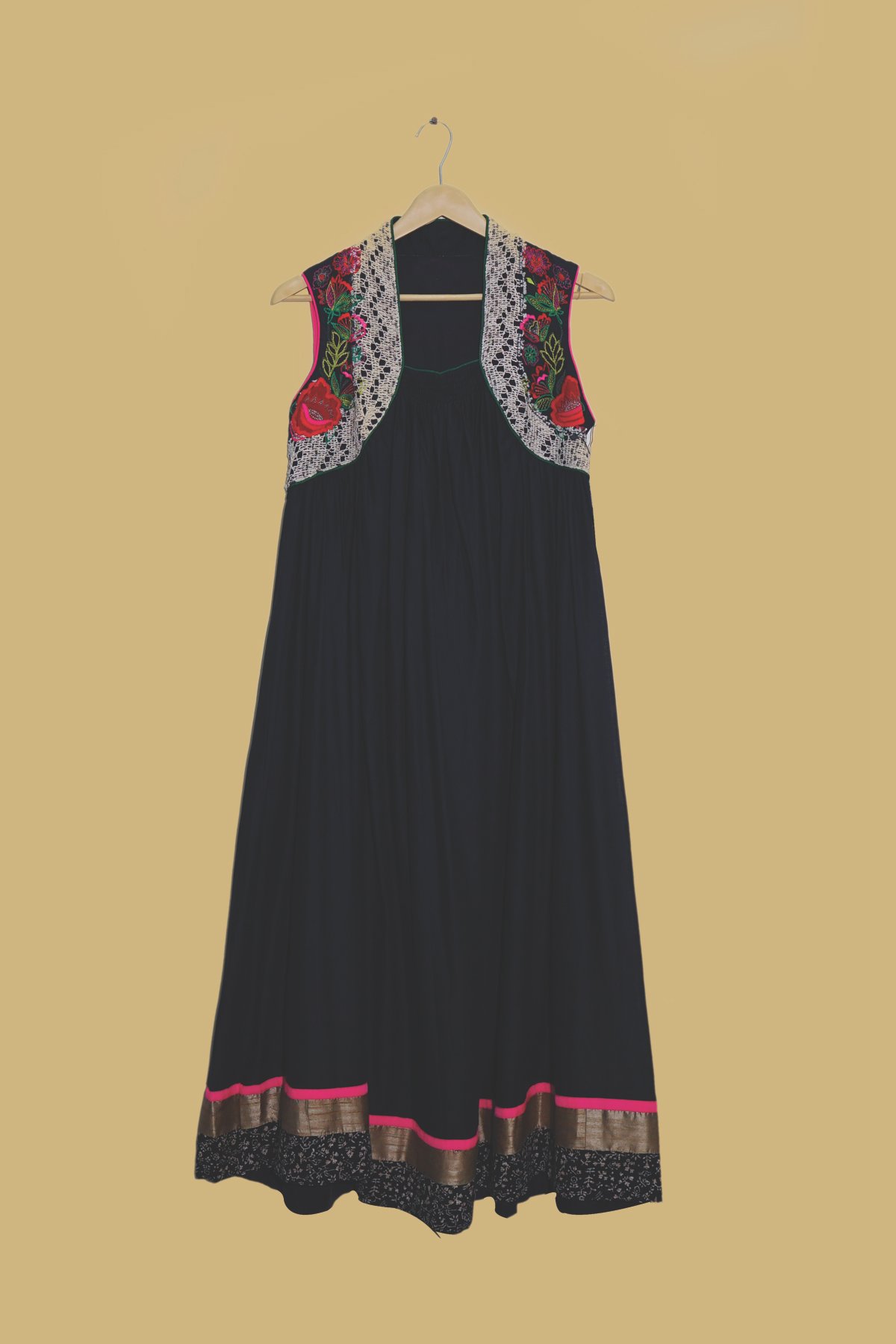 Be the first to review “Black Sleeveless Embroidered Long Kurti”