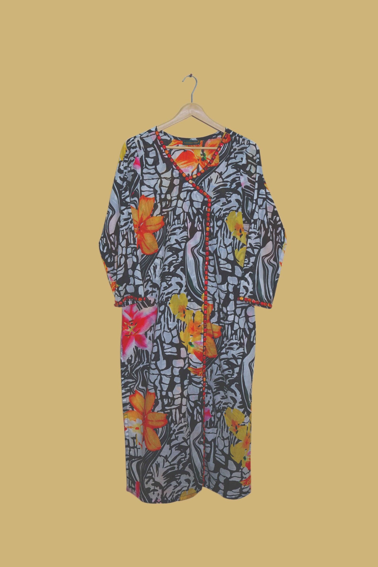 Bring color to your comfort with this bold floral nightwear by Dua Fashion Corner. Designed for style and relaxation, this piece blends vibrant hues with a modern yet cozy silhouette.