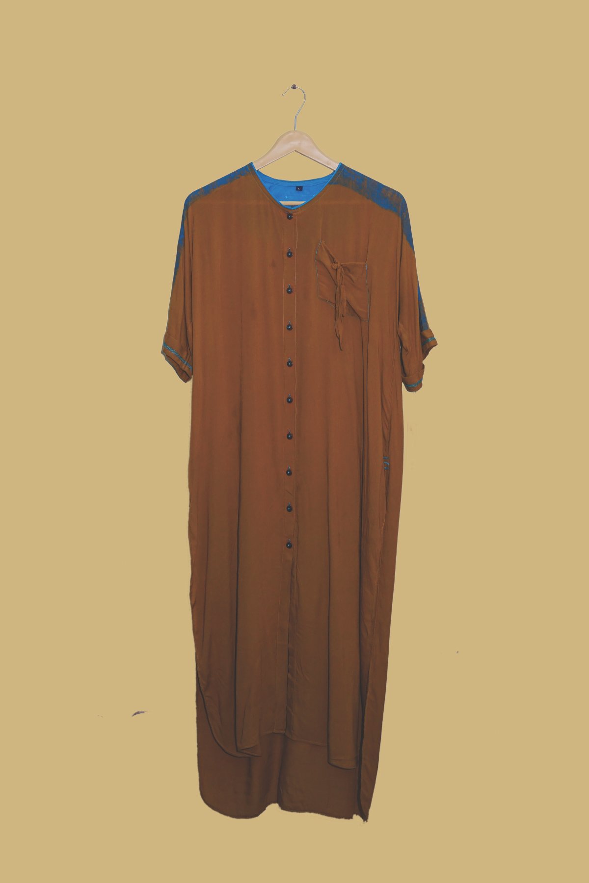 Introducing the Caramel Calm Kaftan, your go-to choice for effortless sophistication. This button-down shirt-style dress is crafted in a fluid caramel hue, exuding warmth and calm.