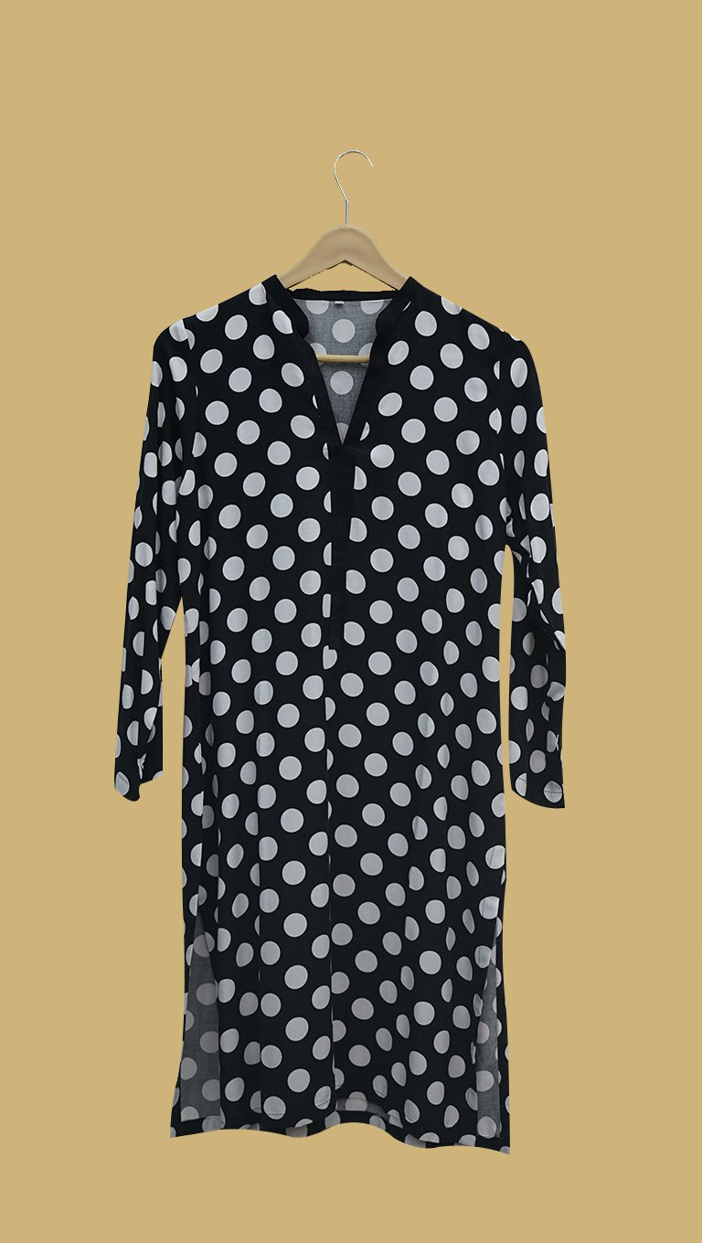 Be the first to review “Classic Black & White Polka Dot Kurti”