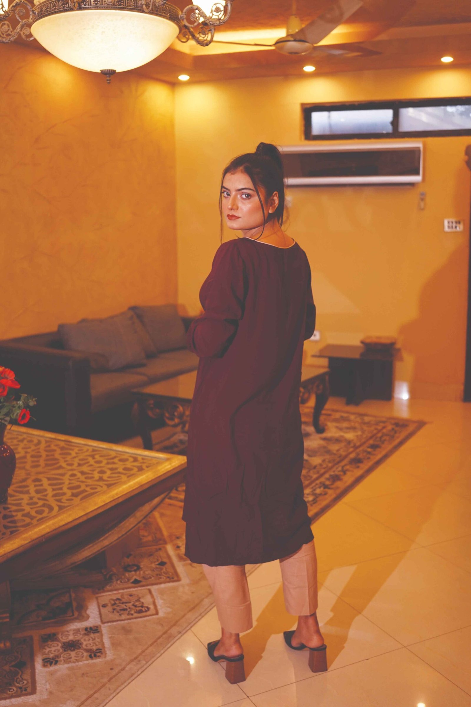Experience elegance in its purest form with this stunning maroon 3-piece suit by Dua Fashion Corner. Designed for women who value minimalism with a touch of class, this outfit is an ideal blend of comfort, style, and simplicity. The deep maroon shade creates a graceful appeal, while the beige trousers add soft contrast. Comes with a matching dupatta to complete your look effortlessly.