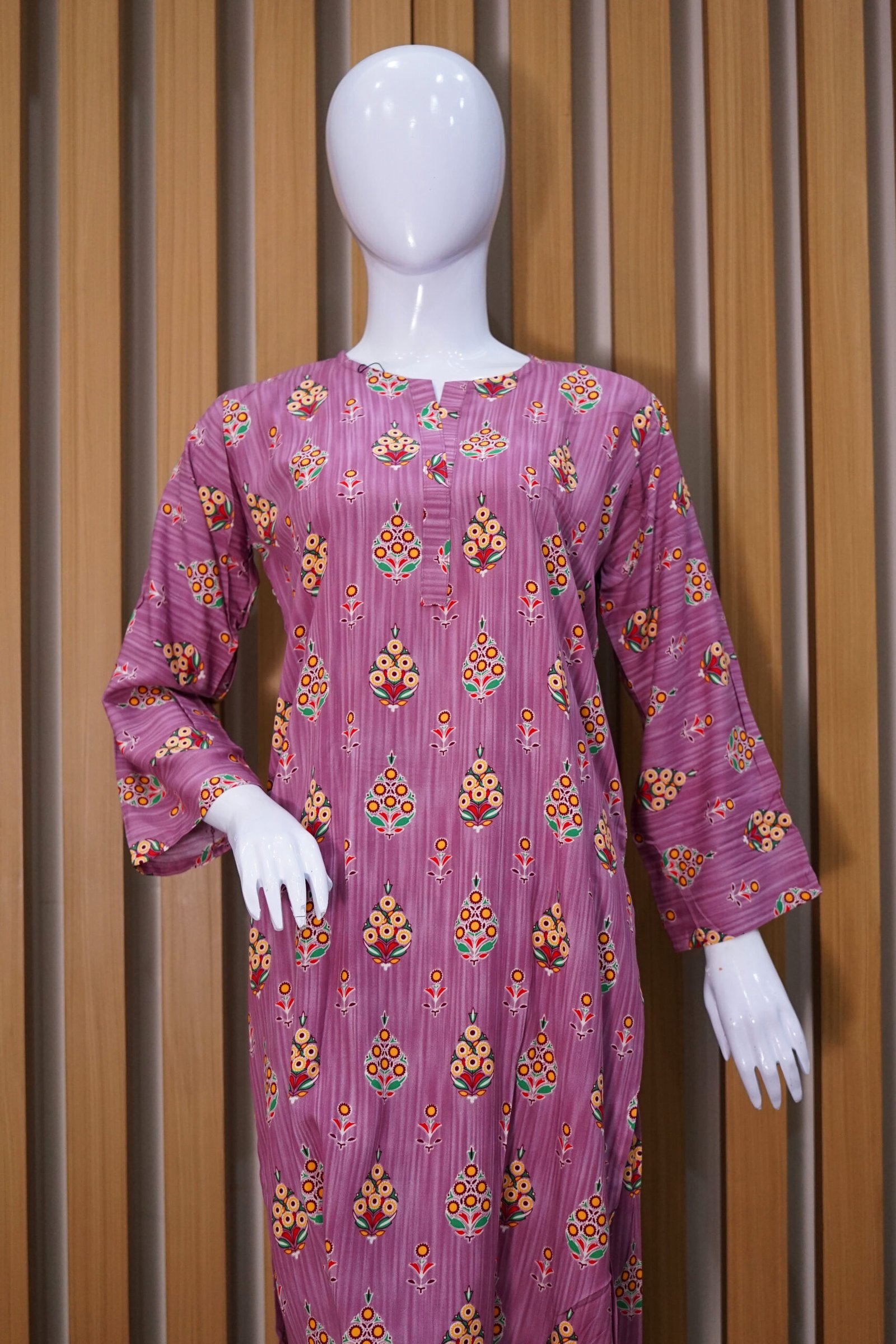 Bring timeless charm to your wardrobe with this beautifully crafted mauve printed kurta set by Dua Fashion Corner. Designed for effortless style, this set is perfect for daily wear, casual outings, and small gatherings.
