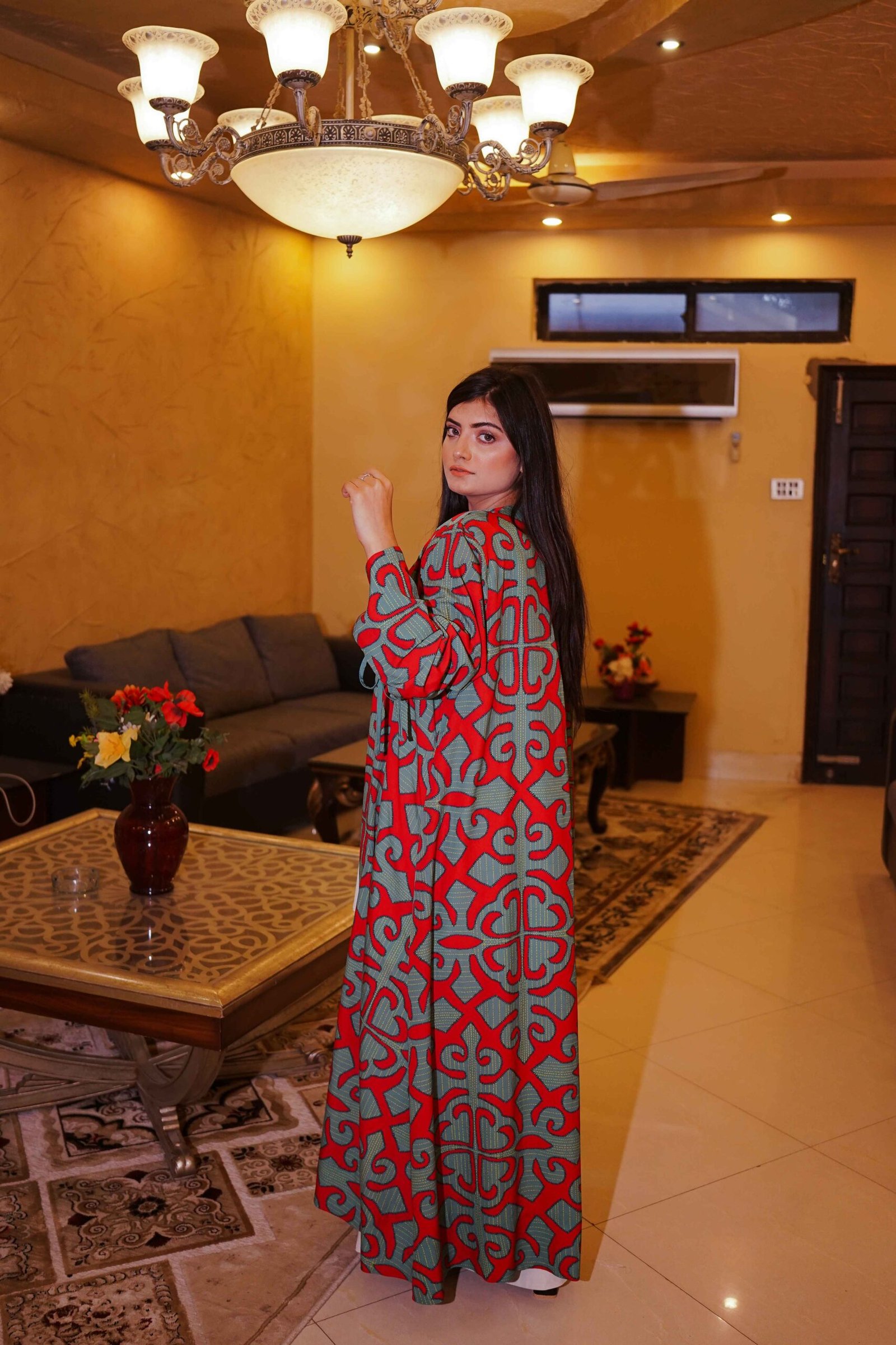 Be the first to review “Contemporary Red & Teal Printed Coat Style Outfit”