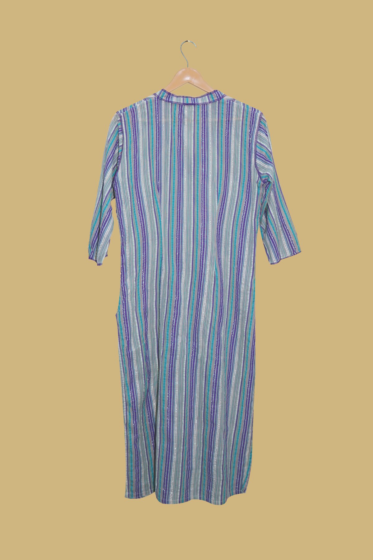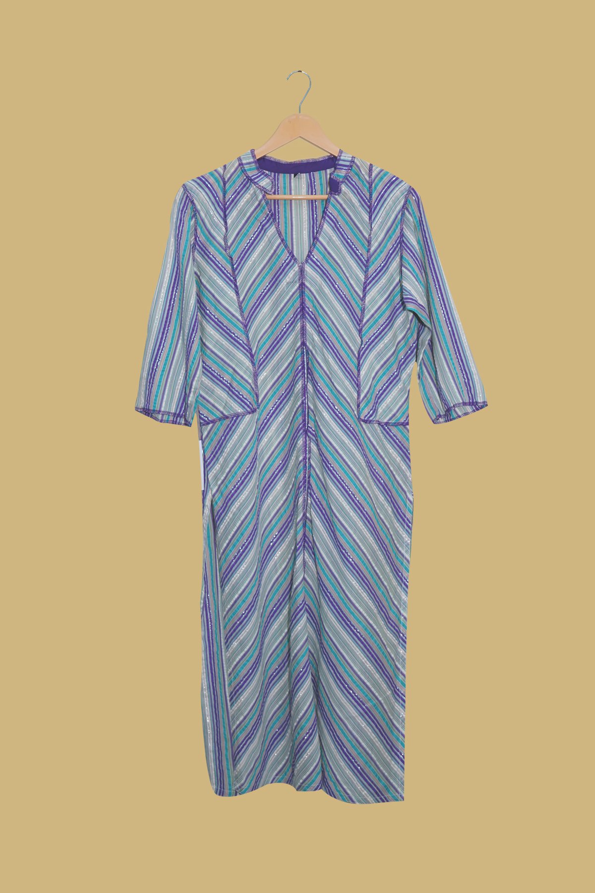 Chevron-striped kurta in fresh blues — structured, breezy, and beautifully modern.