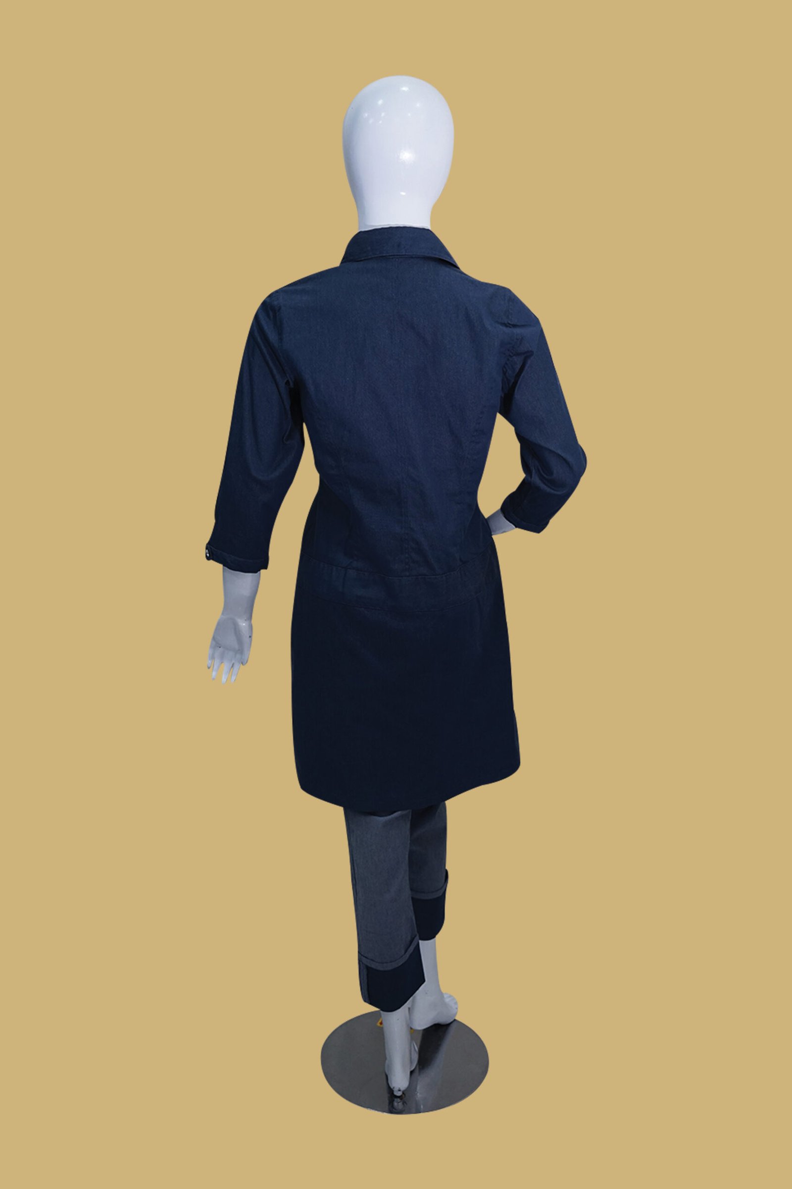 Be the first to review “Dark Denim Style Kurti Suit with Embroidered Pockets”