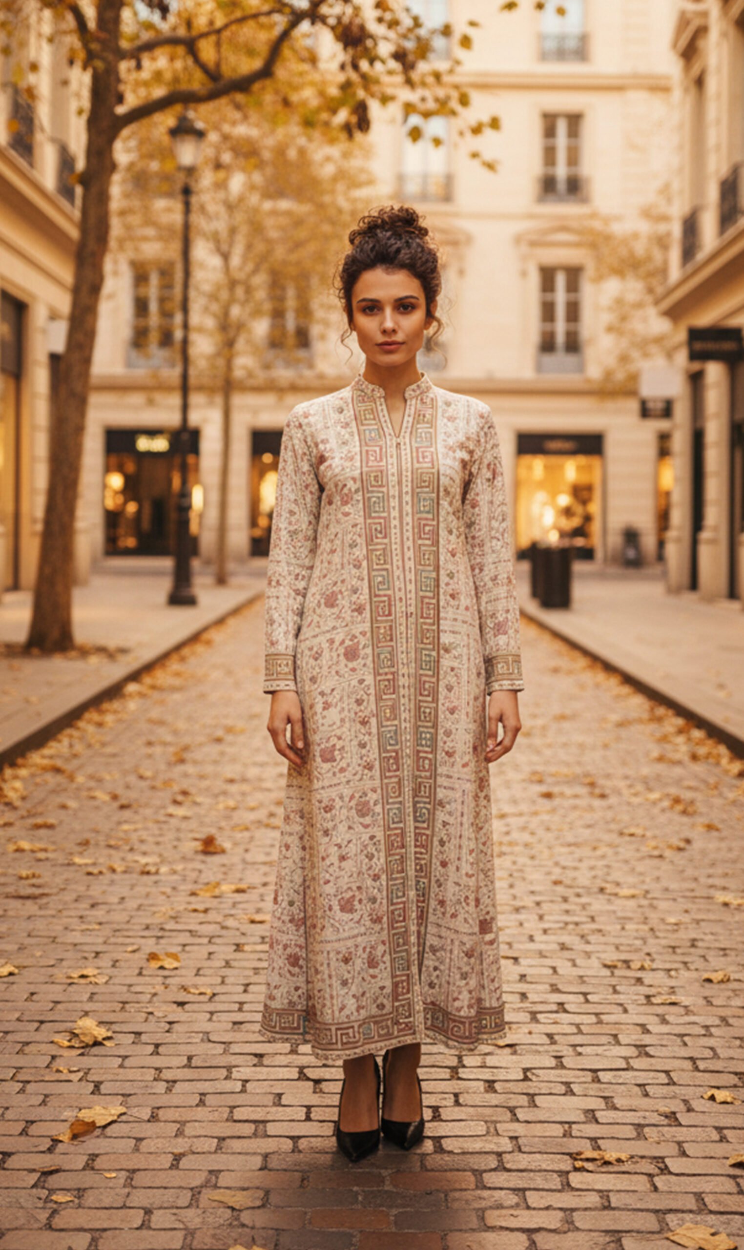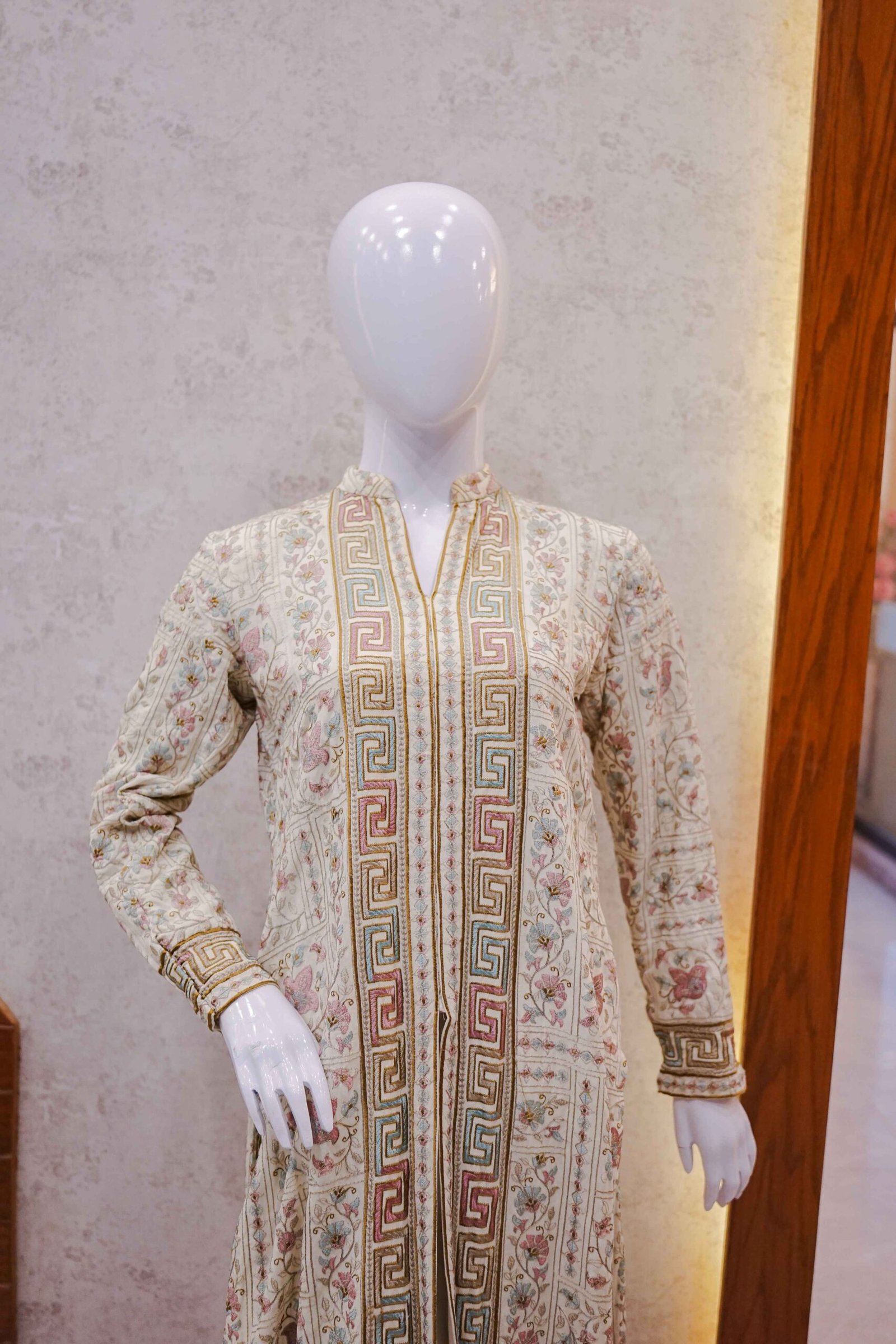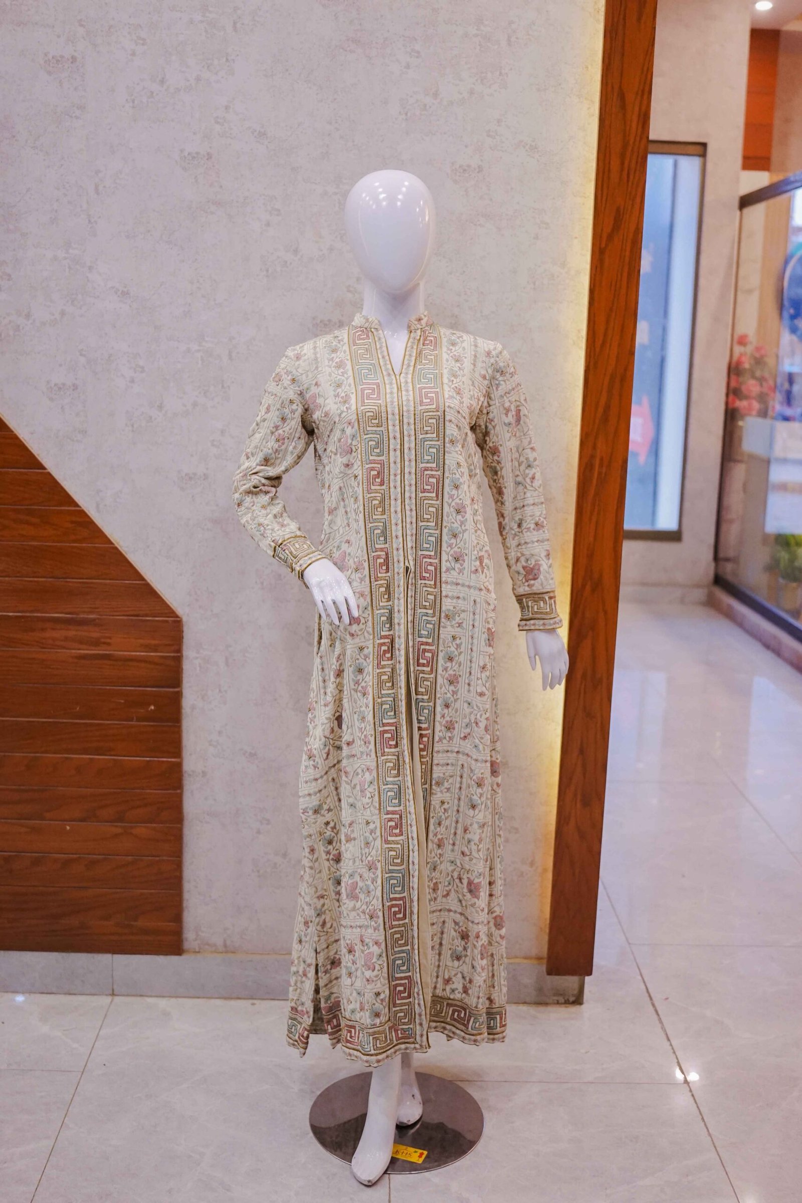 Step into regal elegance with this 1-piece full-length embroidered maxi from Dua Fashion Corner. Crafted with fine threadwork, it features an all-over intricate floral and geometric pattern — creating a perfect fusion of tradition and modern design.