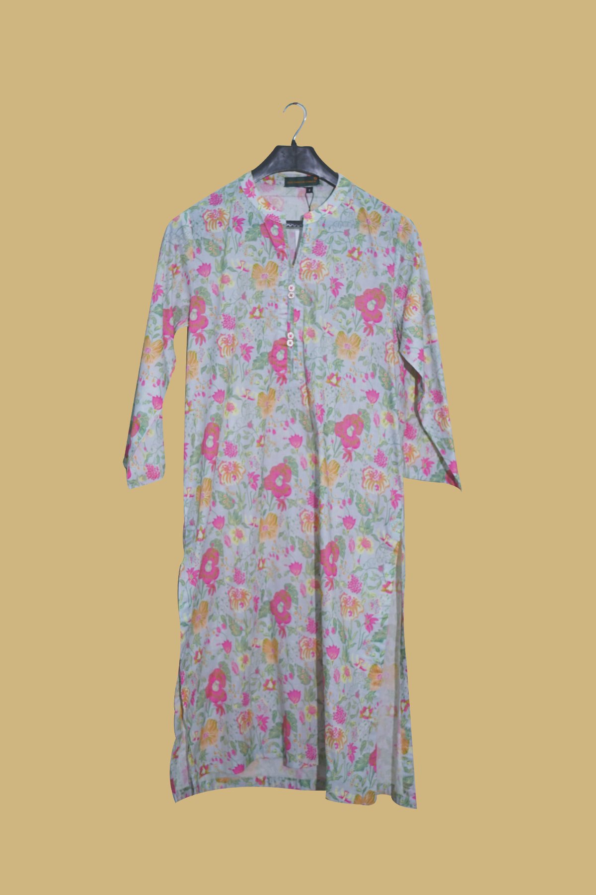 Crafted with a comfortable, breathable fabric, it features a classic round neckline, front button placket, and relaxed 3/4 sleeves. Whether you’re heading out for brunch or enjoying a sunny day out, this kurta is your go-to for fresh feminine vibes.