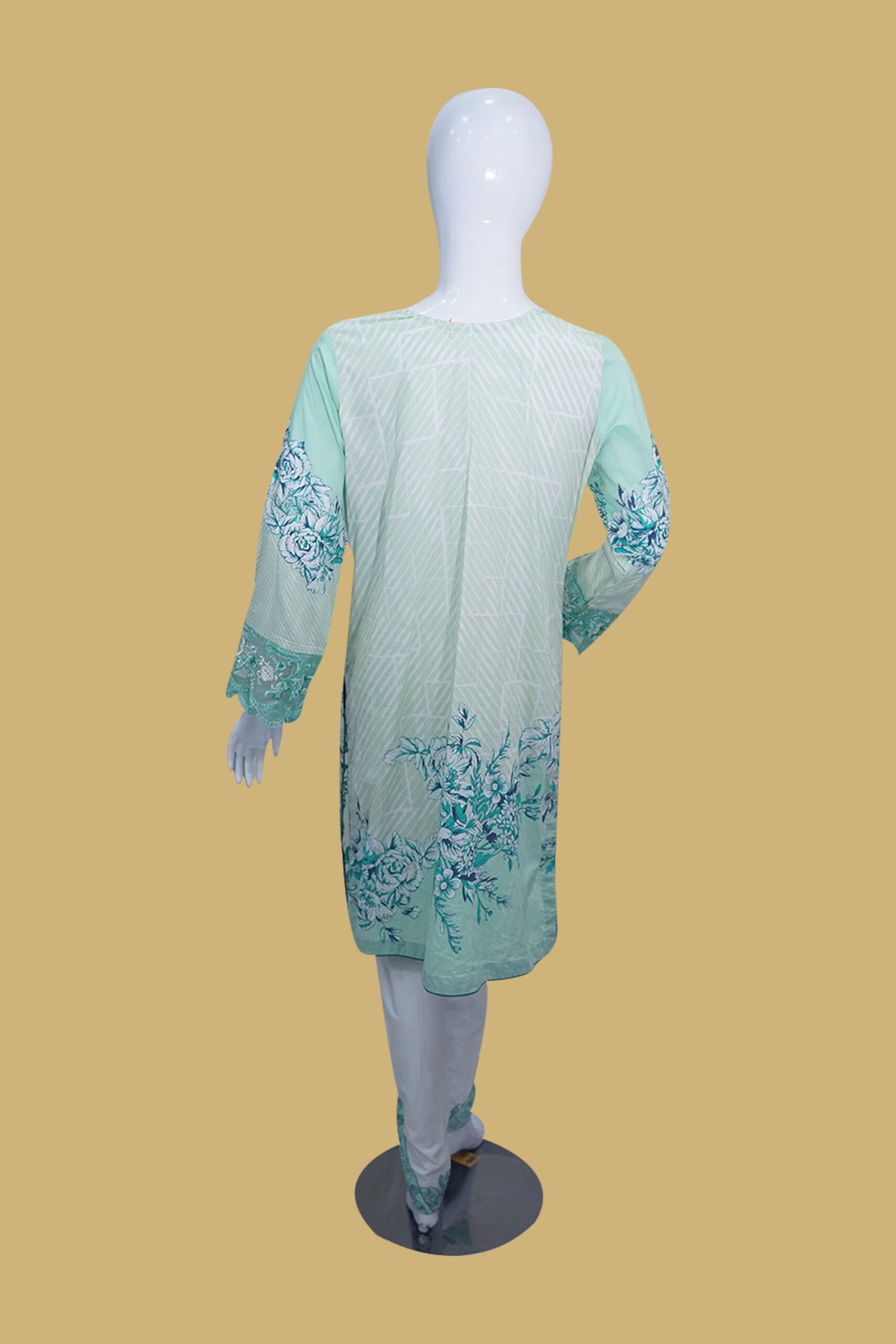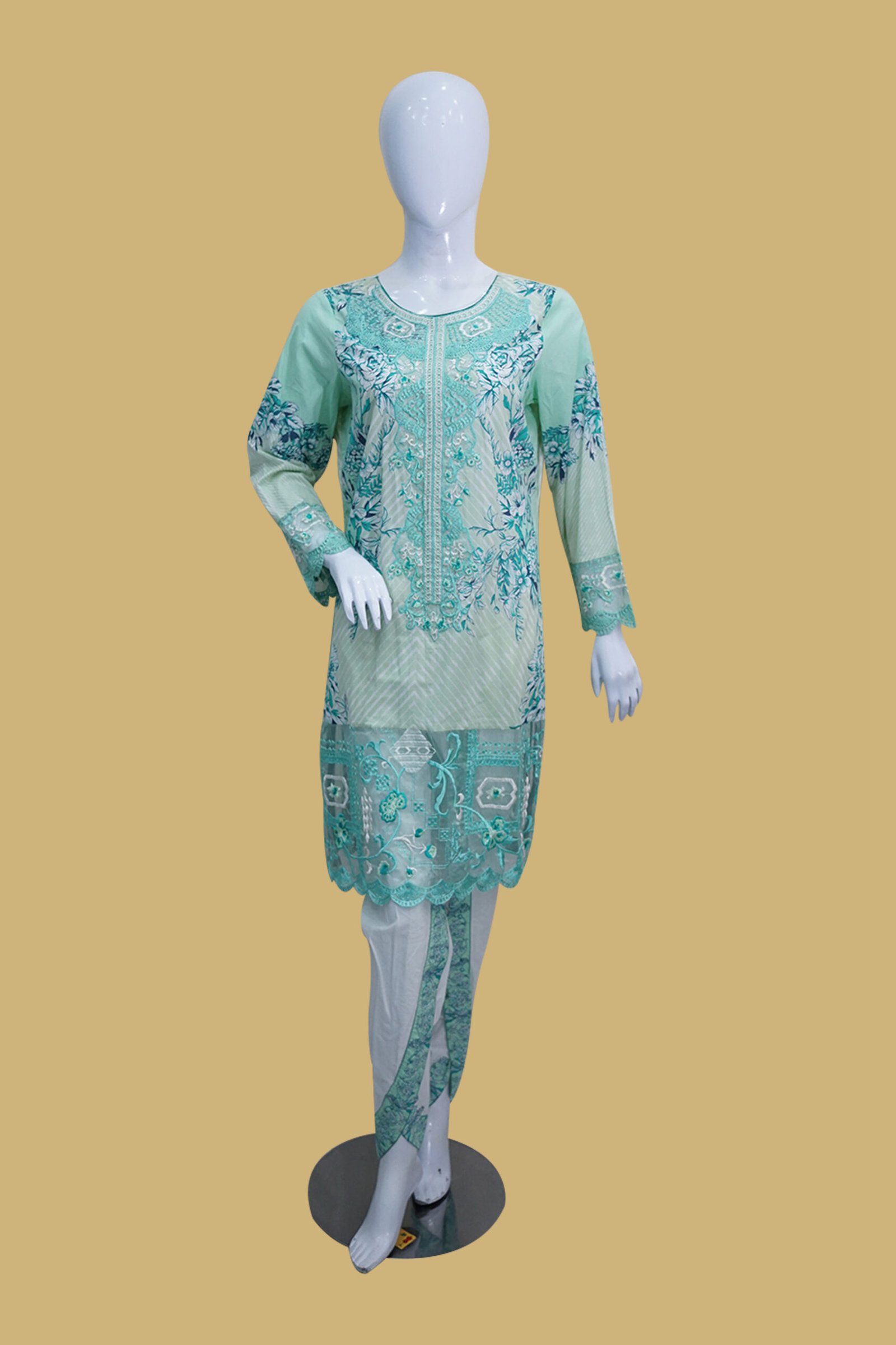 Step into grace and freshness with this gorgeous mint green embroidered suit from Dua Fashion Corner. Designed in premium lawn fabric, this outfit brings together softness and style for your everyday and festive needs.