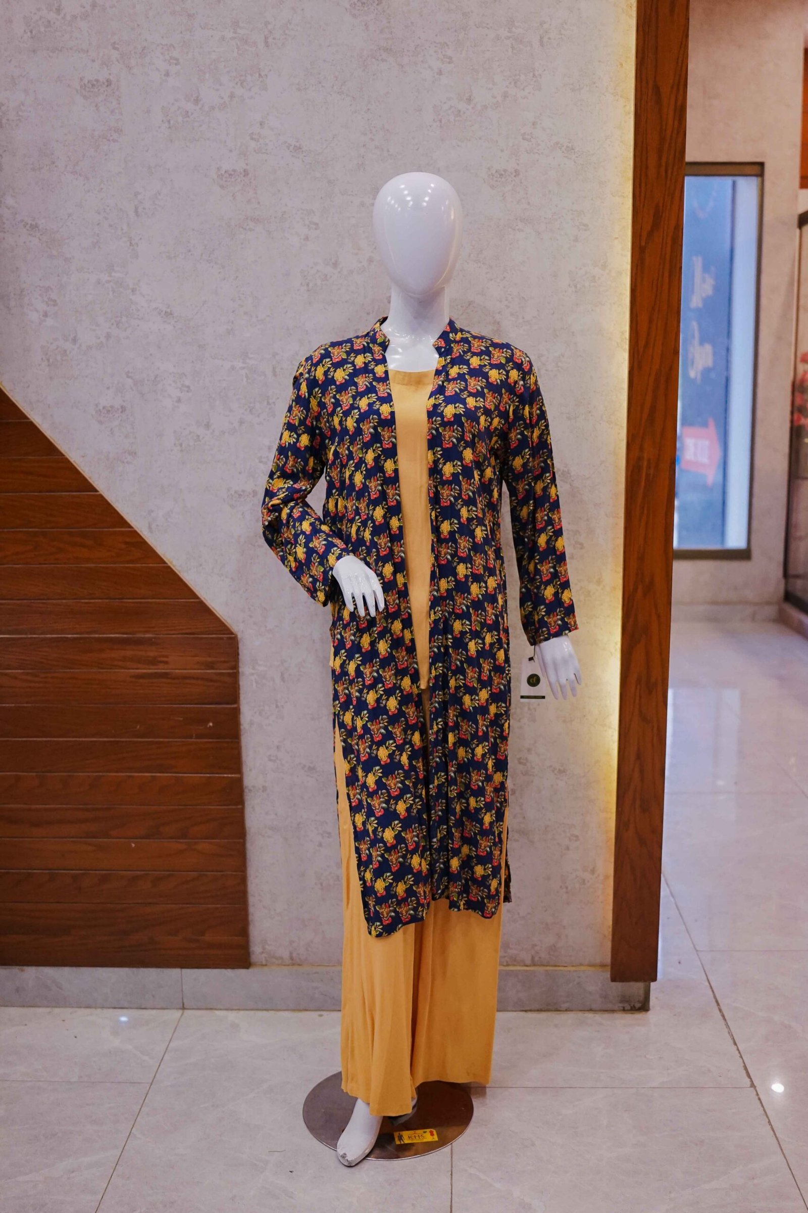 Be the first to review “Mustard 2-Piece Set with Navy Blue Floral Printed Coat”