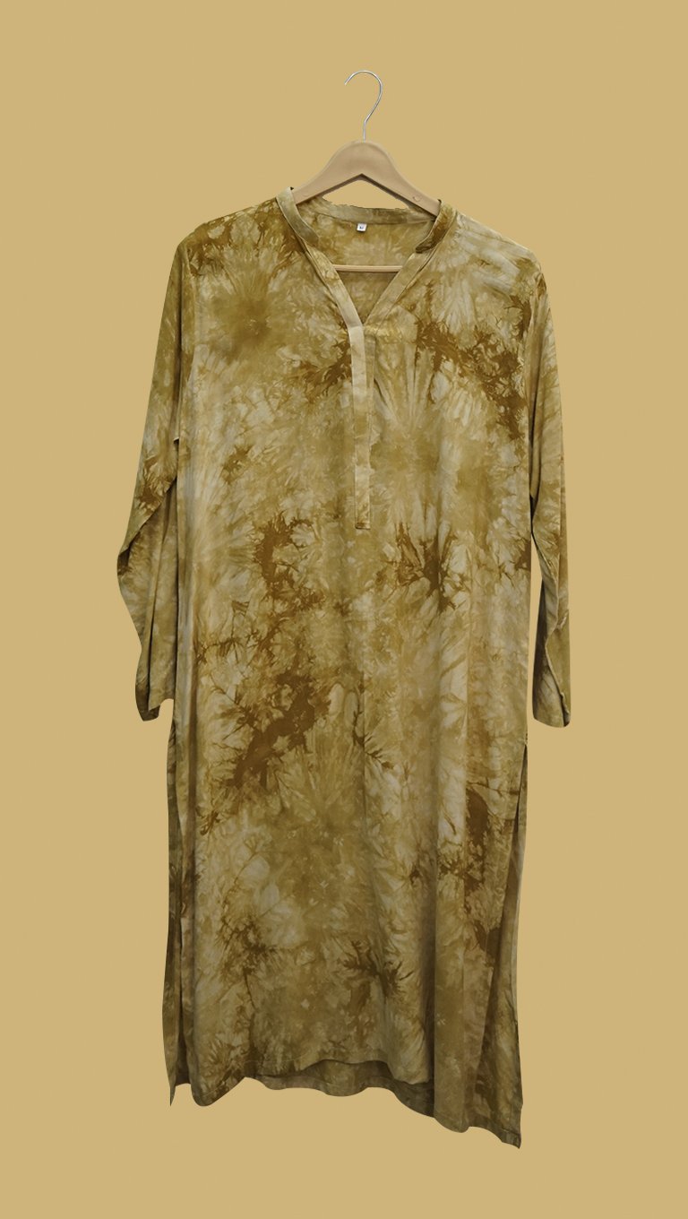 Tap into bohemian charm with this unique olive green tie-dye kurti. Its subtle yet artistic dye pattern creates a one-of-a-kind look that never goes out of style. The lightweight, breezy fabric makes it ideal for both casual hangouts and relaxed workdays.