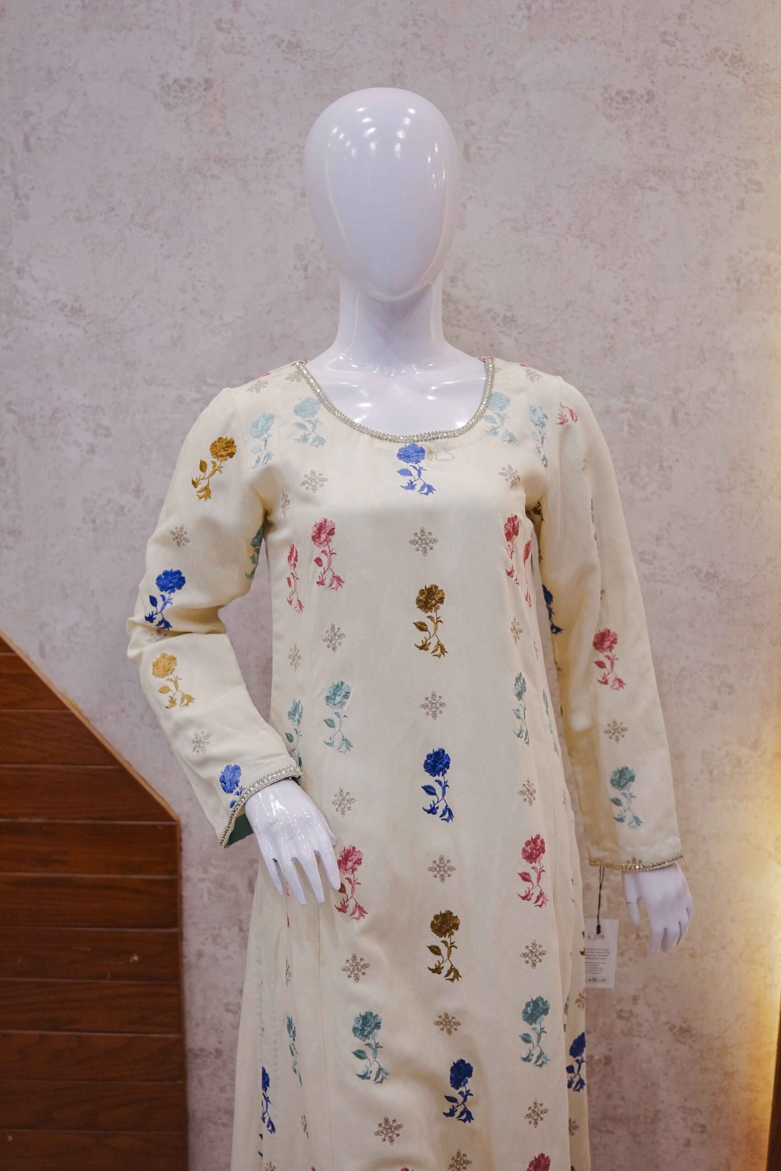 This 1-piece embroidered shirt from Dua Fashion Corner is your go-to for light and graceful everyday wear. Made with soft breathable fabric, the shirt features a scattered floral thread embroidery pattern in multicolor tones â including soft pink, blue, mustard, and green â giving a festive yet subtle charm.