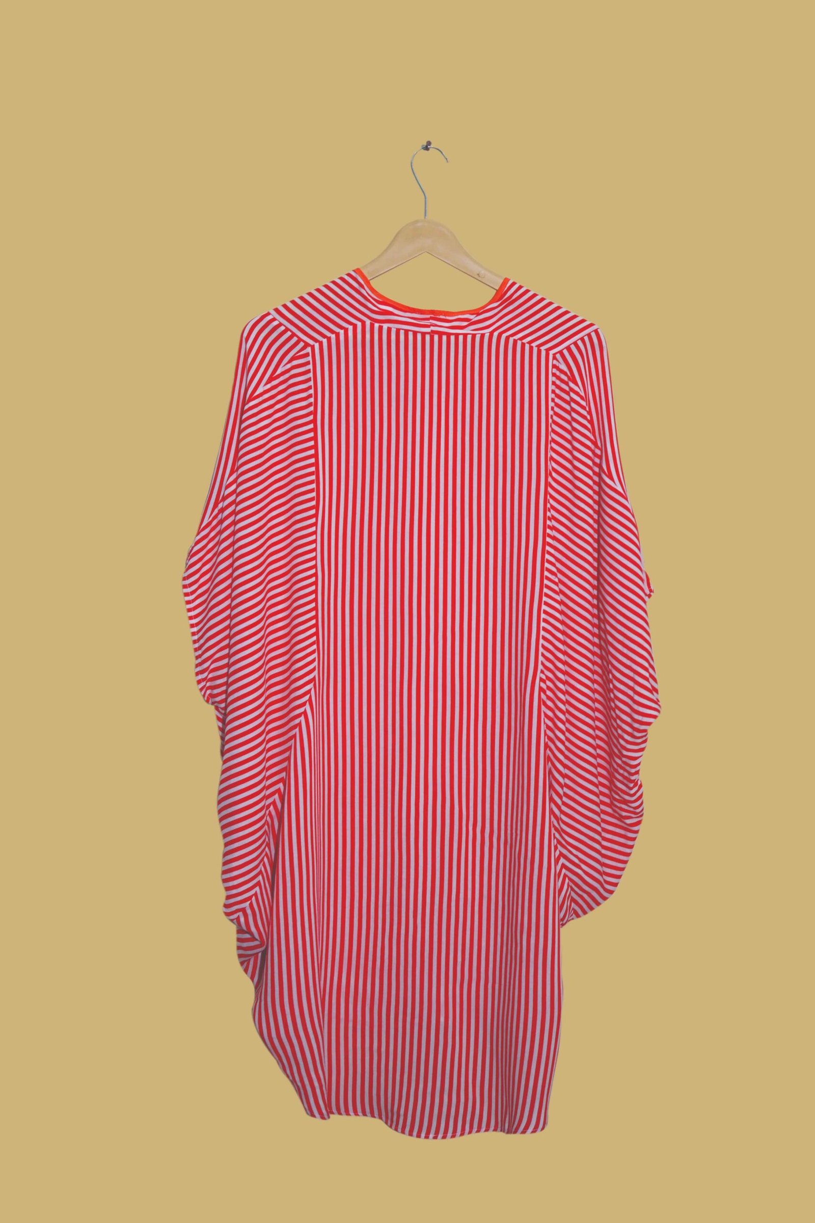 Elevate your wardrobe with this elegant batwing-style kaftan from Dua Fashion Corner. Designed with striking vertical red and white stripes, this statement piece blends modern flair with comfort. Crafted from lightweight, breathable georgette fabric, it offers a graceful flow and relaxed silhouette — ideal for casual summer days or chic get-togethers.