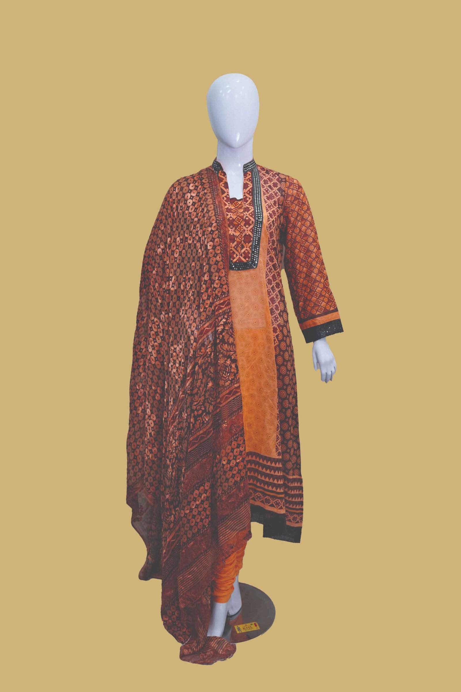 Step into tradition with bold confidence in this rust and orange cotton kurti set from Dua Fashion Corner. Inspired by classic Ajrak-style block prints, this outfit is a perfect blend of heritage and fashion-forward flair.