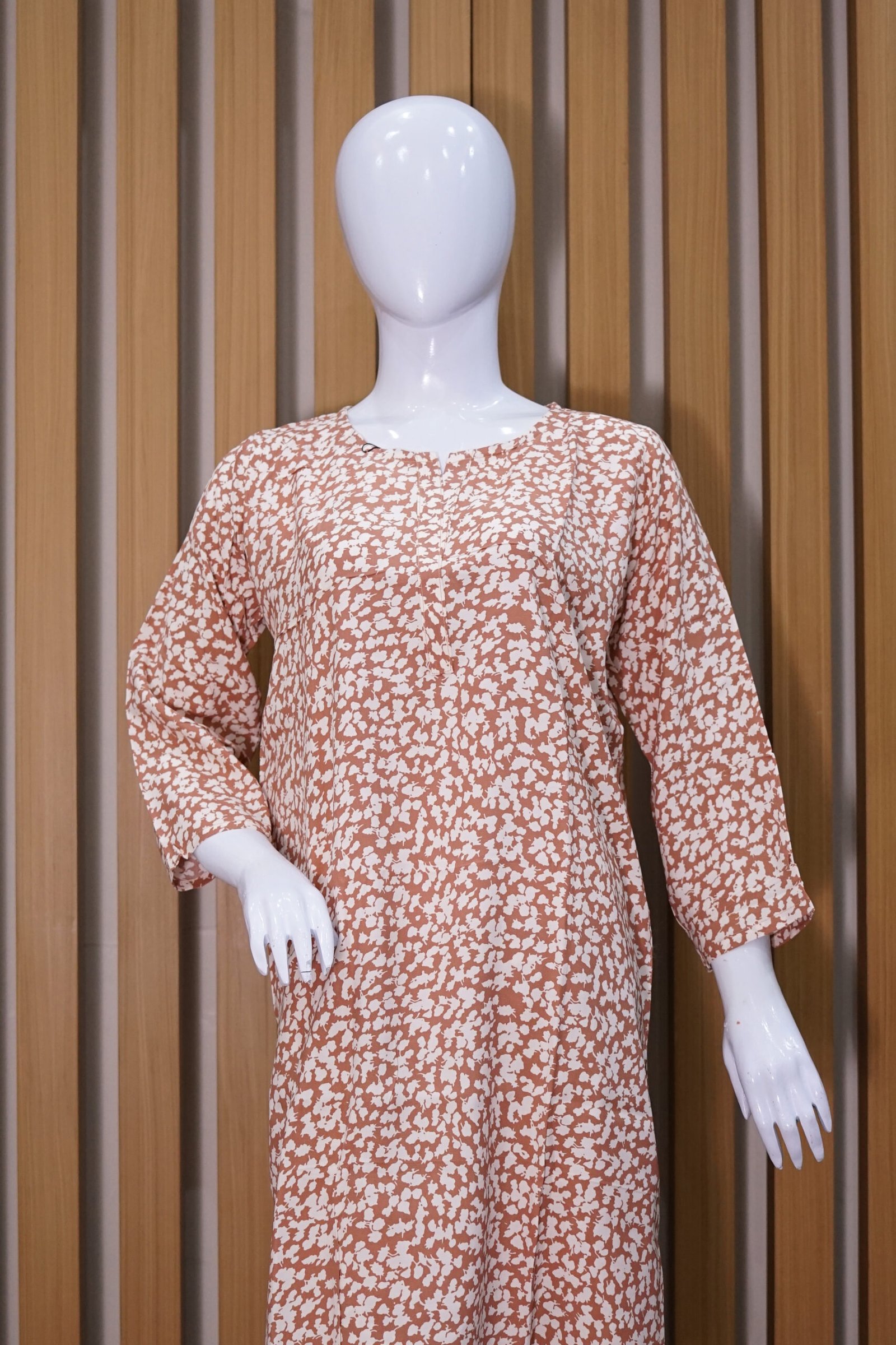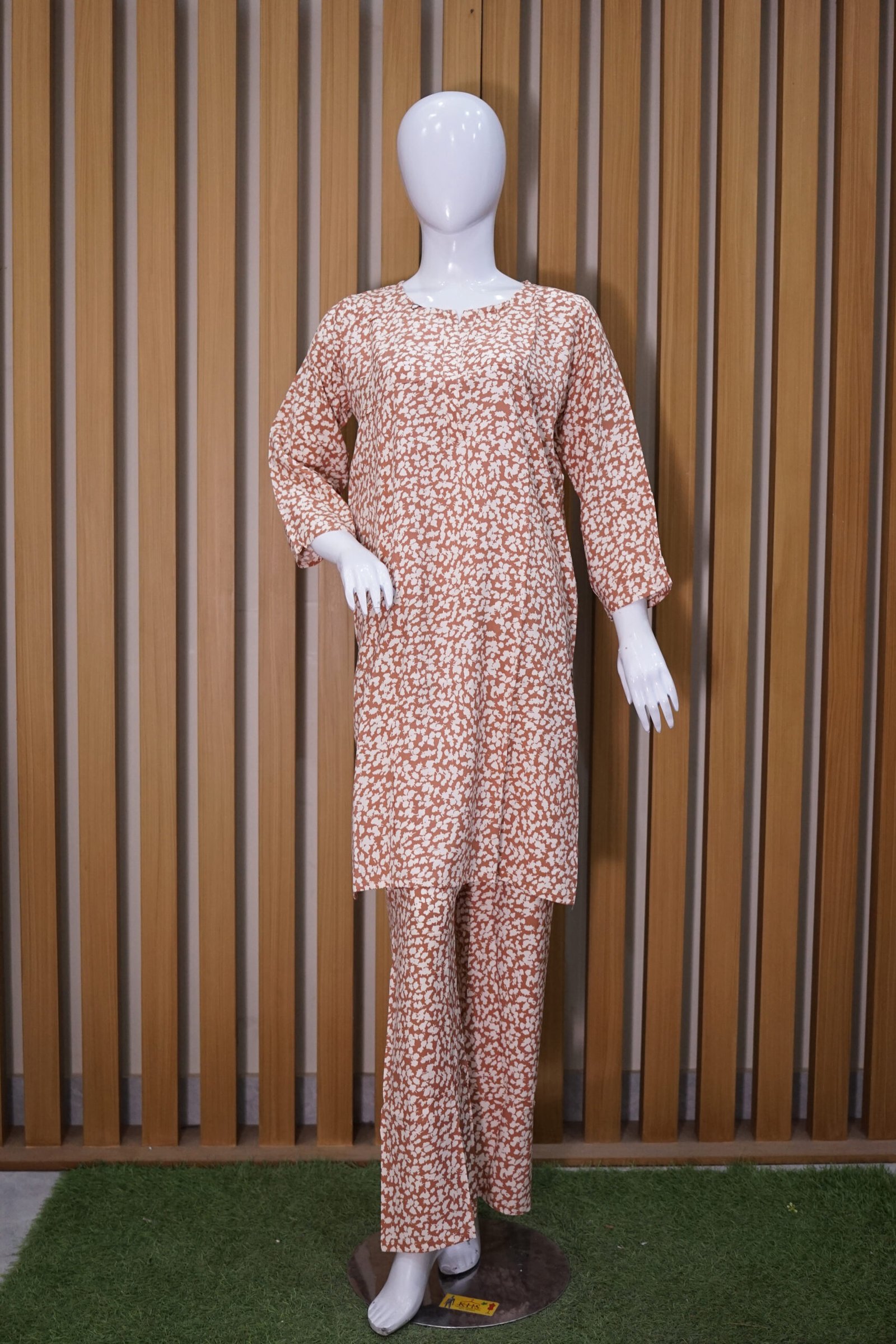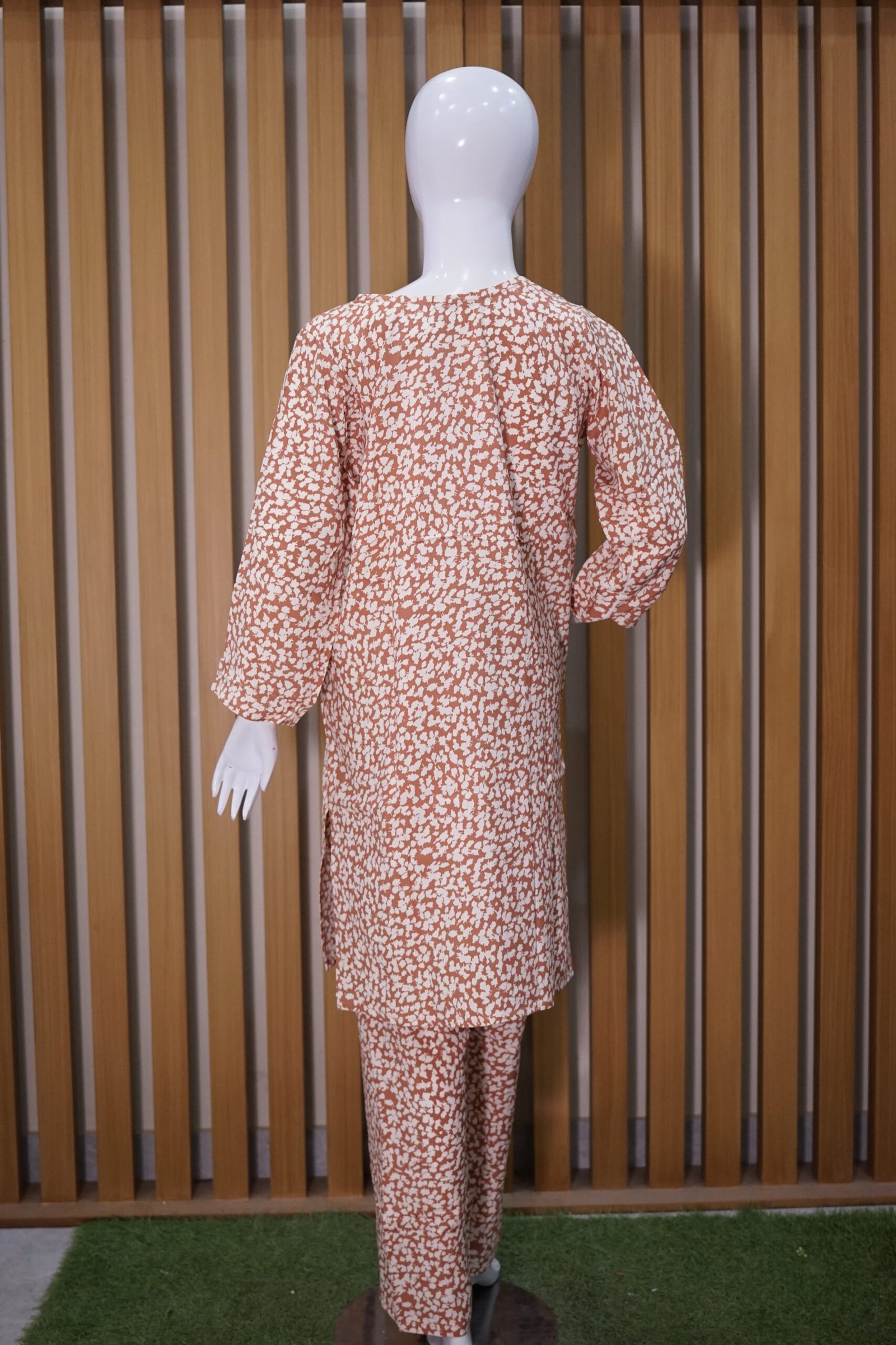 Bring timeless charm to your wardrobe with Dua Fashion Corner’s Terracotta Bloom Kurta, designed for those who love minimal sophistication. This outfit blends comfort and style through a subtle floral print spread evenly across a warm terracotta backdrop. The straight-cut kurta pairs beautifully with matching trousers, creating a balanced, graceful silhouette.
